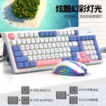 狼途有线静音键盘高颜值机械手感背光平板笔记本电脑打字女生办公
