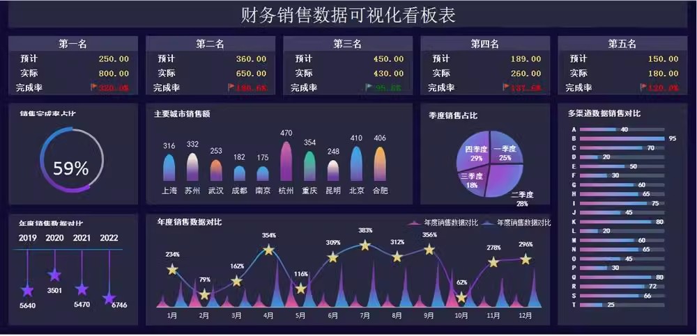 简介:动态可视化数据图表excel看板分析销售人力财务数据自动生成指标