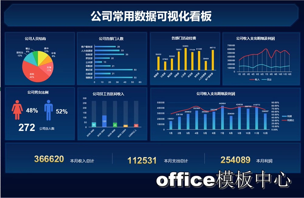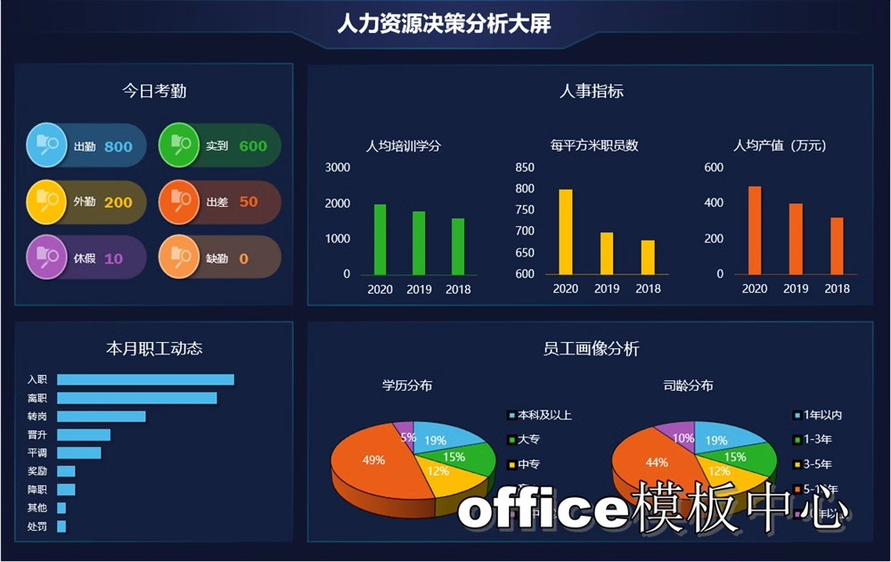 动态可视化数据图表excel看板分析销售人力财务数据自动生成指标